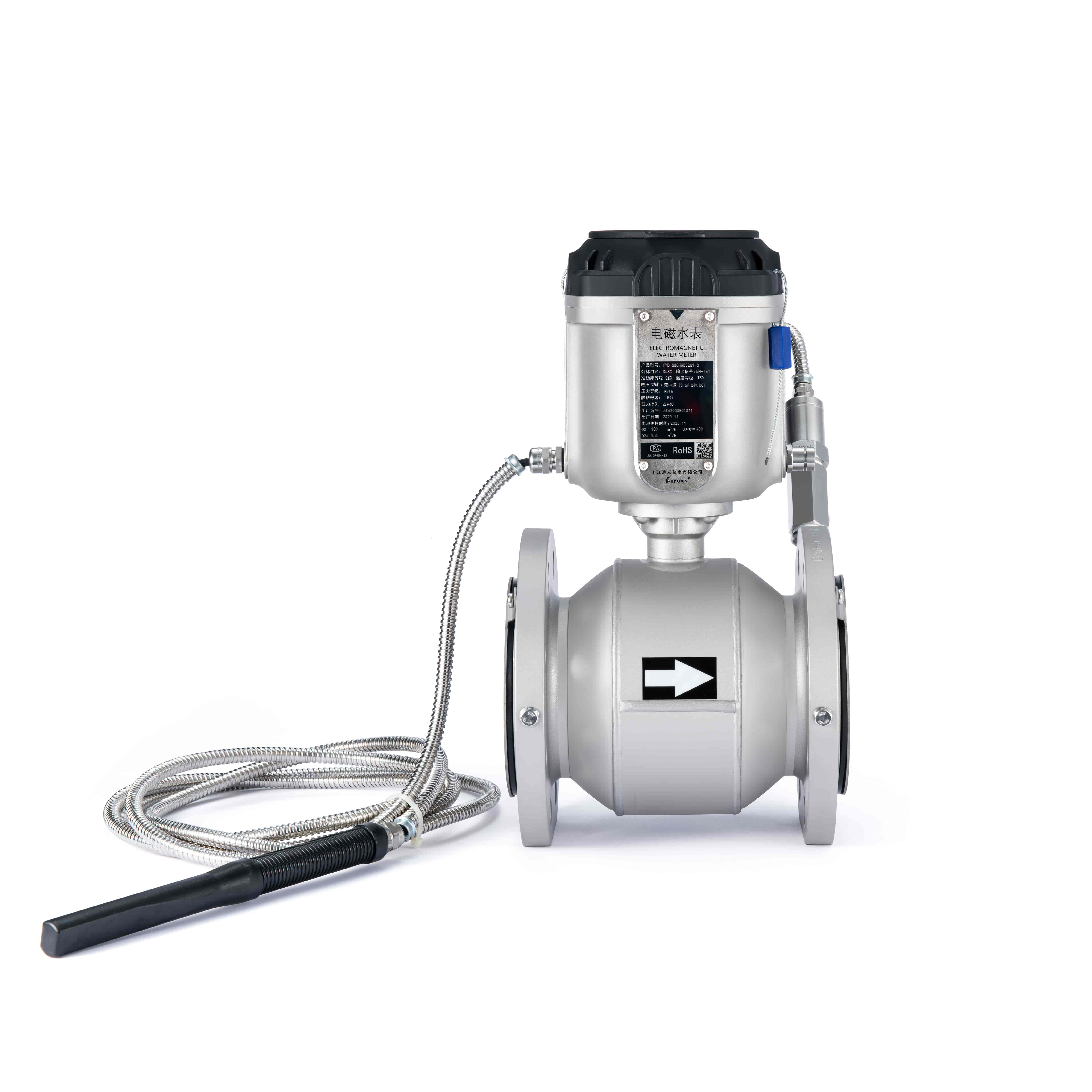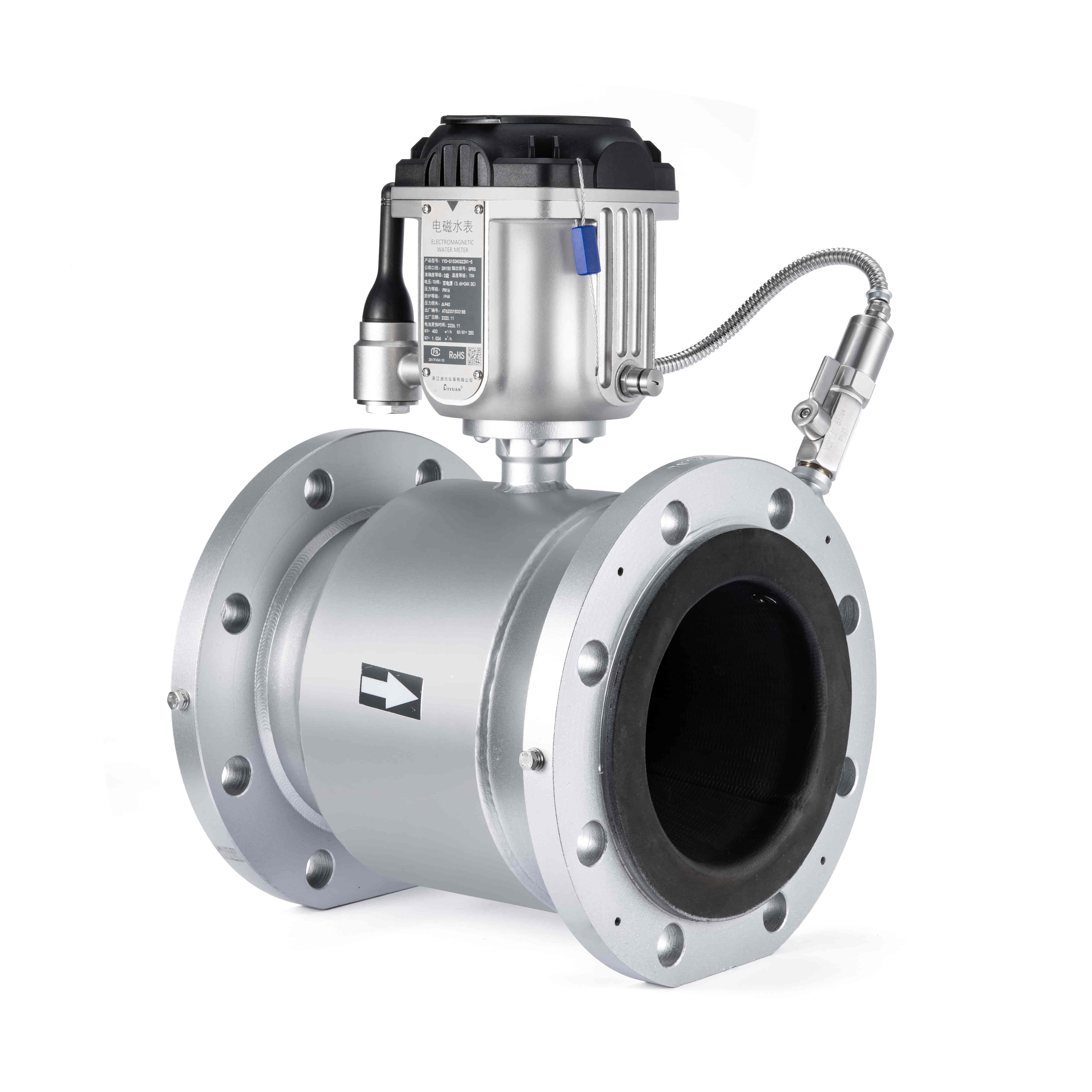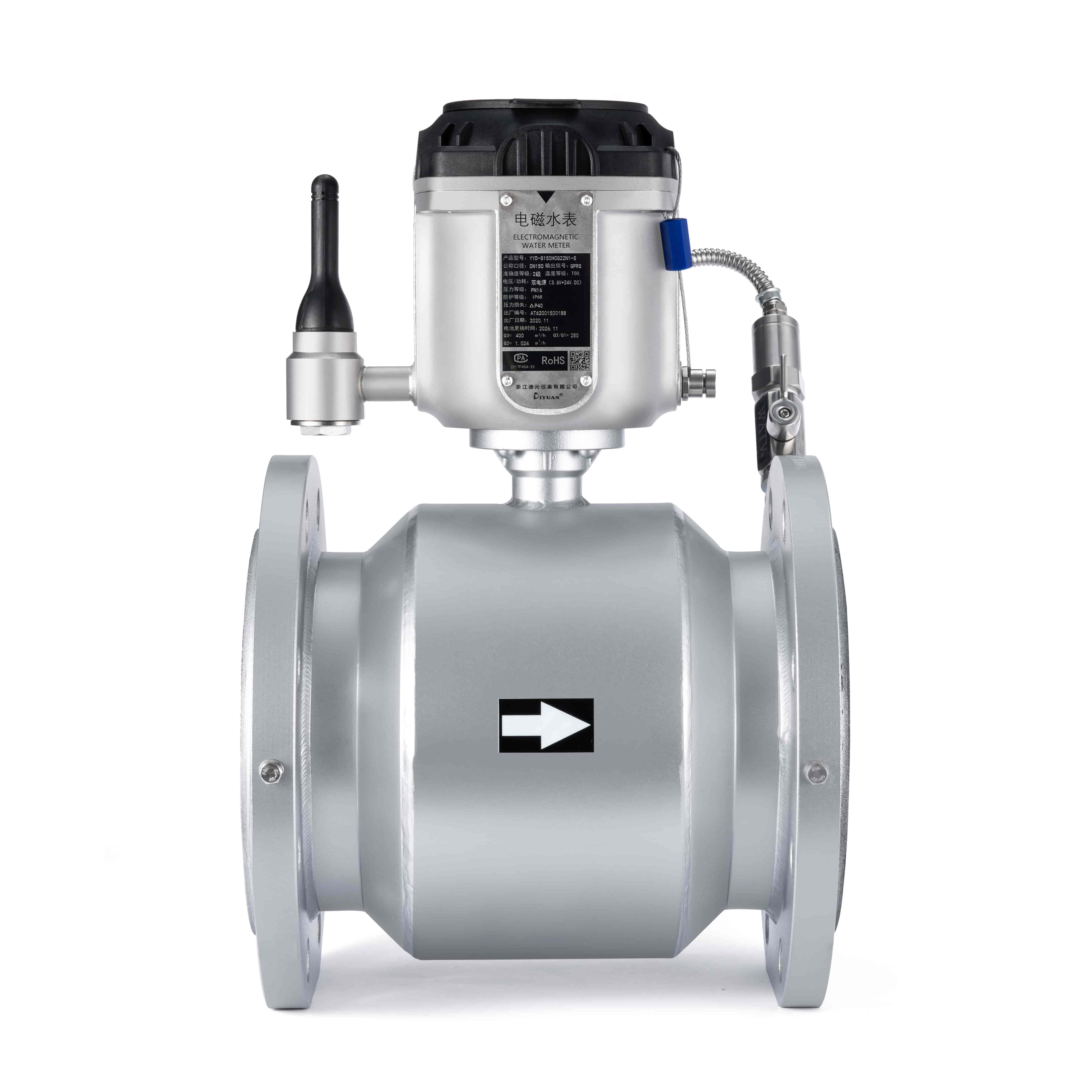 三級(jí)四級(jí)分區(qū)口徑小,夜間最小流量低,安裝現(xiàn)場(chǎng)直管段長(zhǎng)度難以符合流量計(jì)安裝要求,要求電池供電。YYD-S電磁水表,電池使用壽命6年以上,采用矩形自整流導(dǎo)管,安裝無(wú)前后直管段要求,始動(dòng)流速3mm/s,量程比最高可達(dá)R500,一體式遠(yuǎn)傳能夠?qū)⒘髁?、壓力等?shù)據(jù)上傳至智慧水務(wù)系統(tǒng),實(shí)現(xiàn)漏損監(jiān)控。